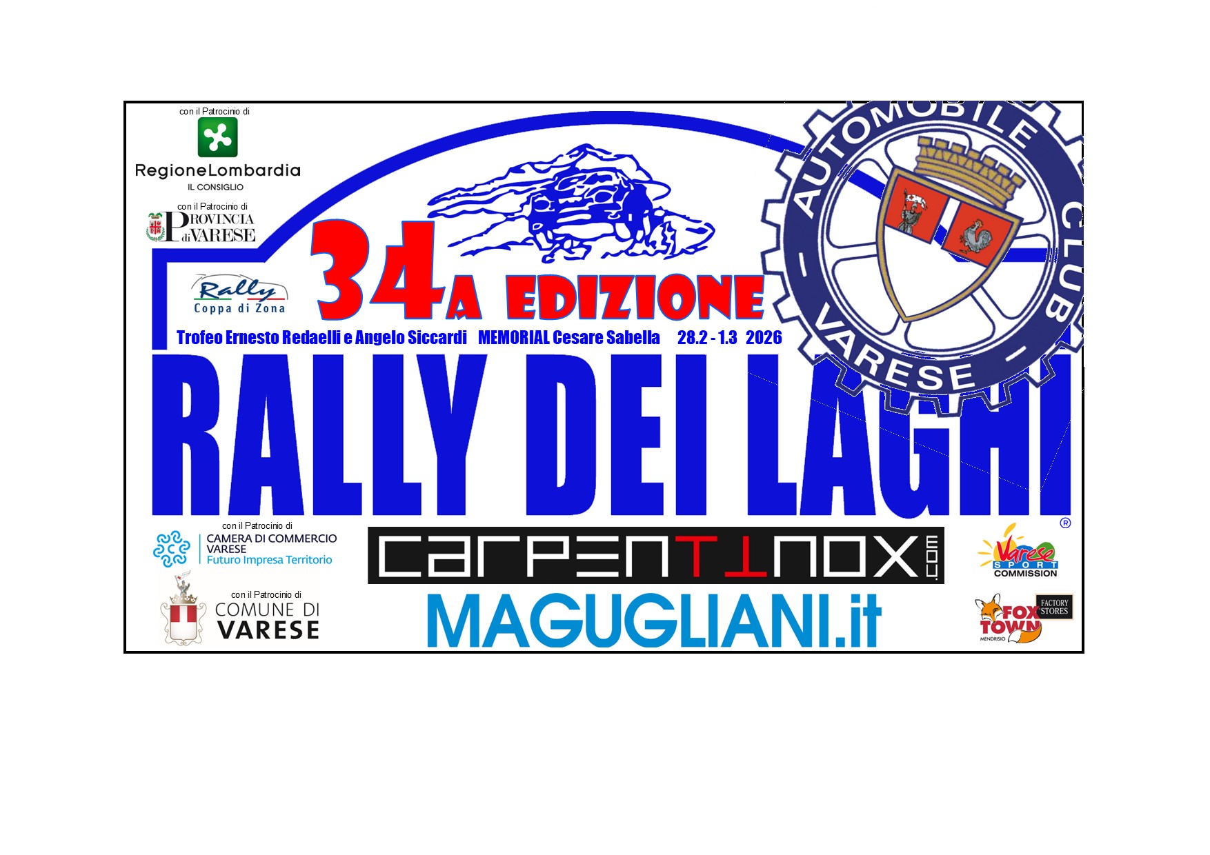 Lo sguardo degli appassionati è puntato sul percorso del 34esimo Rally dei Laghi. Le due sezioni dedicate alle ricognizioni poi, venerdì 27 febbraio, nel pomeriggio, le verifiche pre gara al Salone Estense di Varese (sportive, dove gli equipaggi mostrano i documenti) e in via Marconi-piazza Monte Grappa (tecniche, dove sfilano le auto).